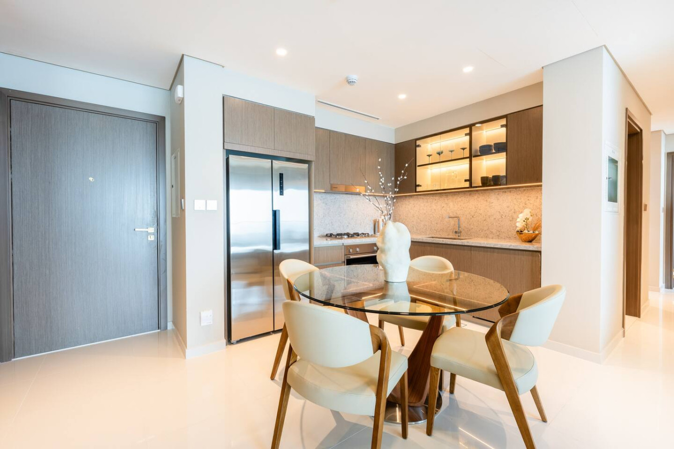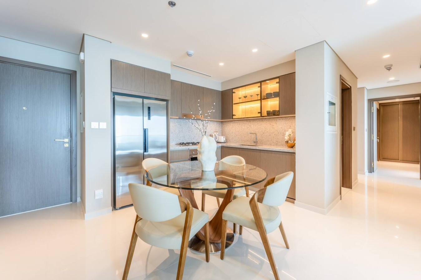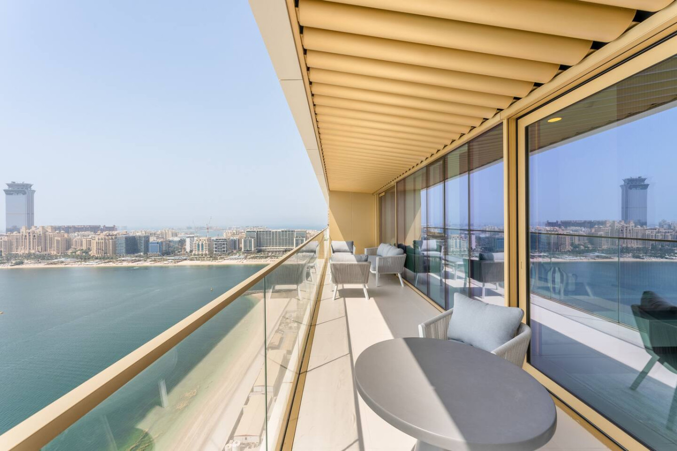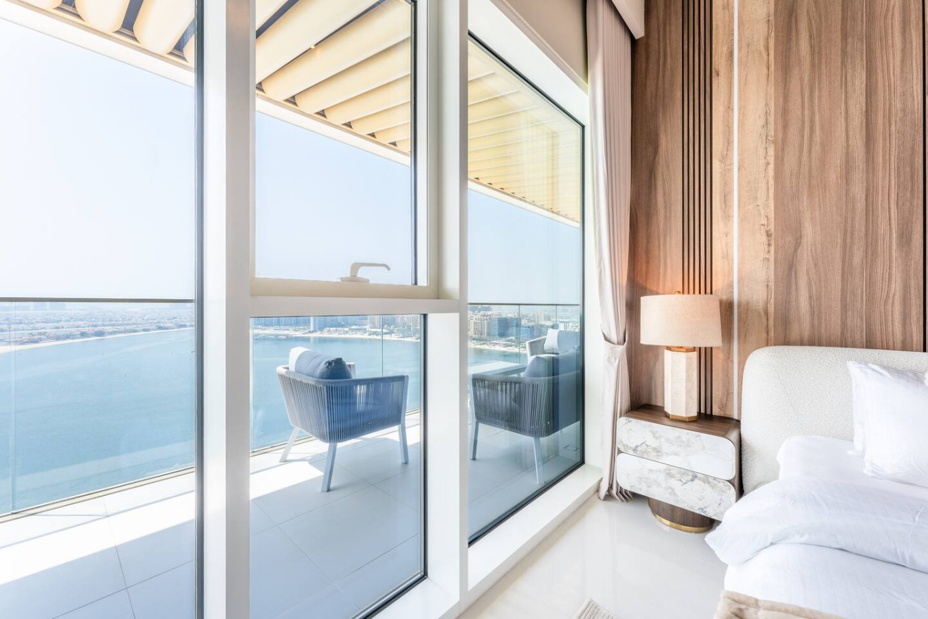 This unique place has a style all its own. Step into a space where every detail has been curated to the highest standard by renowned international designers. The open-plan living and dining area boasts floor-to-ceiling windows that flood the home with natural light while showcasing uninterrupted sea views. Premium finishes, custom furniture pieces, and bespoke lighting elevate the ambiance, creating a sophisticated yet welcoming atmosphere. The sleek modern kitchen comes fully equipped with high-end appliances, marble countertops, and designer cabinetry. Both bedrooms are generously sized, with the master suite featuring a private balcony, walk-in wardrobe, and a spa-inspired en-suite bathroom adorned with luxurious fixtures. Additional features include: • Private balcony with unobstructed Palm Jumeirah views • High-quality hardwood flooring throughout • Built-in wardrobes with soft-close features • Smart home automation system • Secure covered parking • 24/7 concierge and security services Building Amenities: Residents of Grande Bleu enjoy exclusive access to: • Private beach • Infinity-edge swimming pool overlooking the sea • Fully equipped gym and wellness area • Designer lobby with Elie Saab signature aesthetics • Landscaped podium and leisure deck • Walking distance to the Marina and Beachfront Promenade Whether you’re seeking a serene coastal retreat or a stylish Dubai residence, this apartment offers unmatched luxury, views, and design in one of the city’s most sought-after beachfront communities.